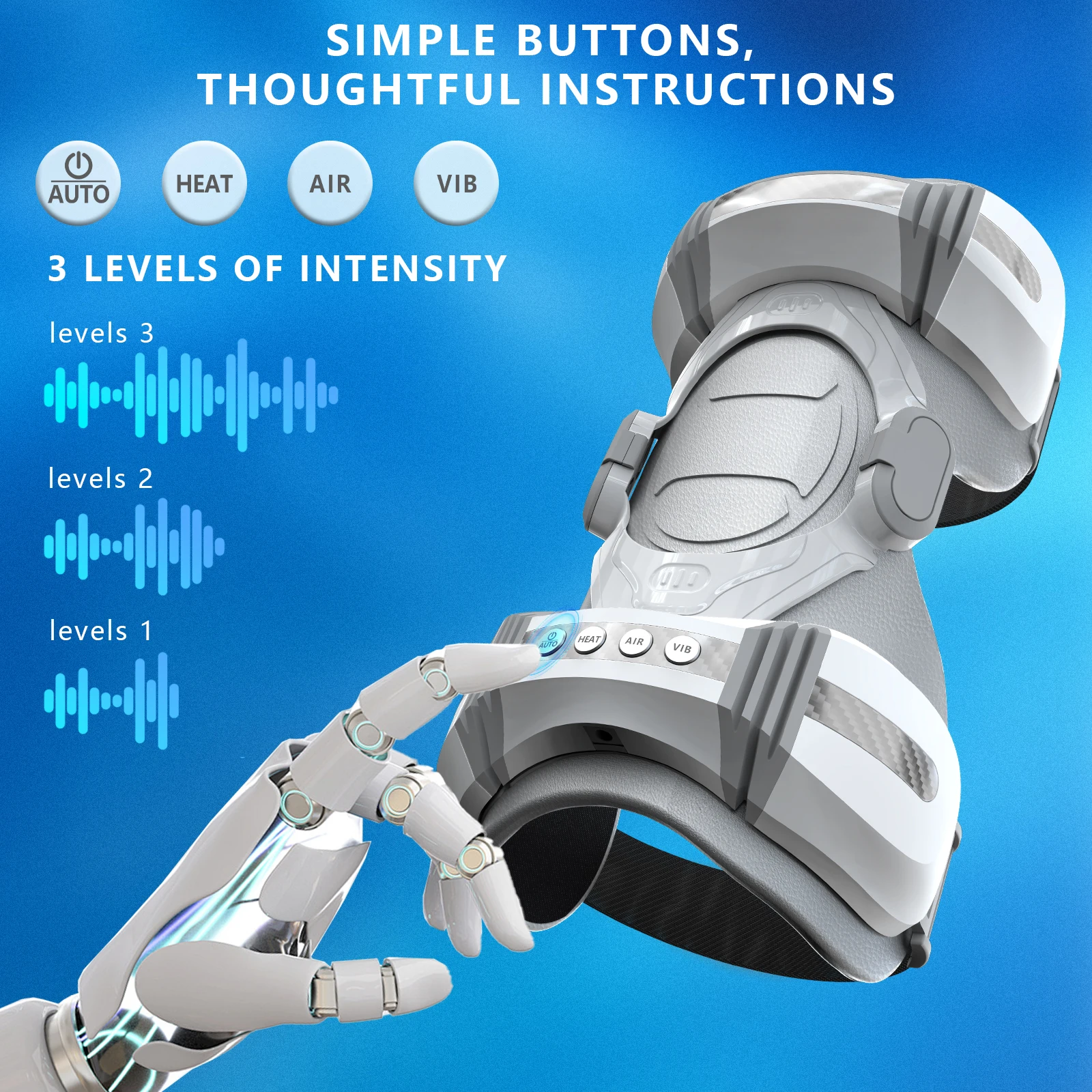 Airbag compression, vibration, and heat therapy work together to reduce knee pain, relieve stiffness, and improve blood circulation.